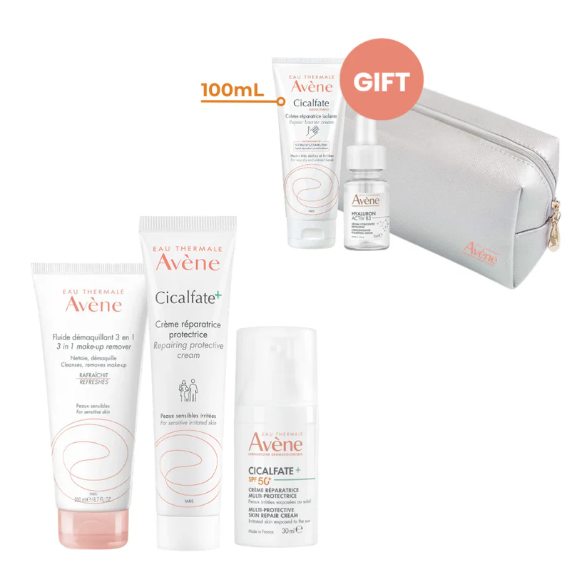 Complete intensive repair and protection bundle from Avène designed for sensitive, irritated, damaged, or post-procedure skin.