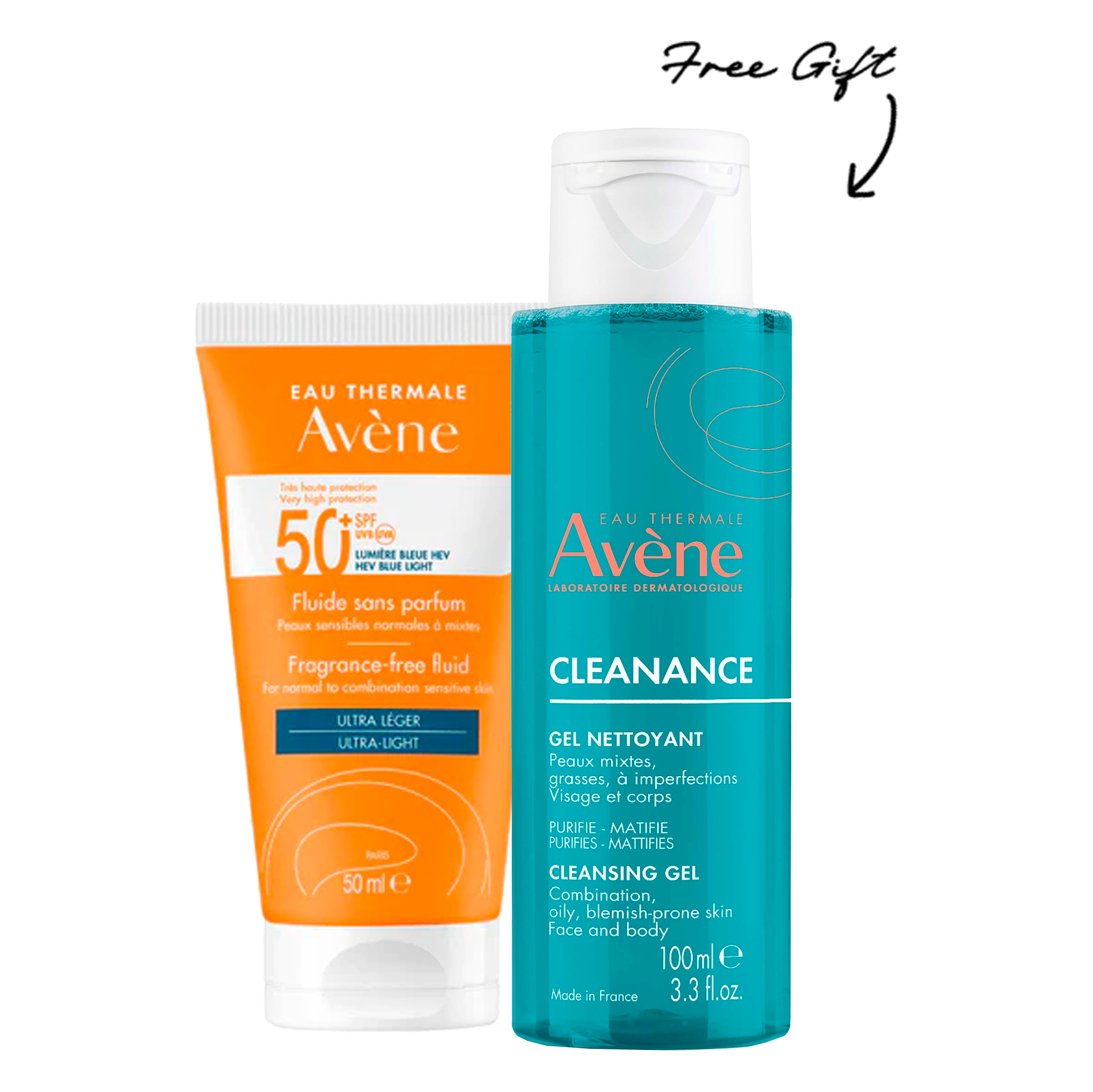 Avene fluid spf 50+ 50ml + Free Cleanance cleansing gel 100ml
