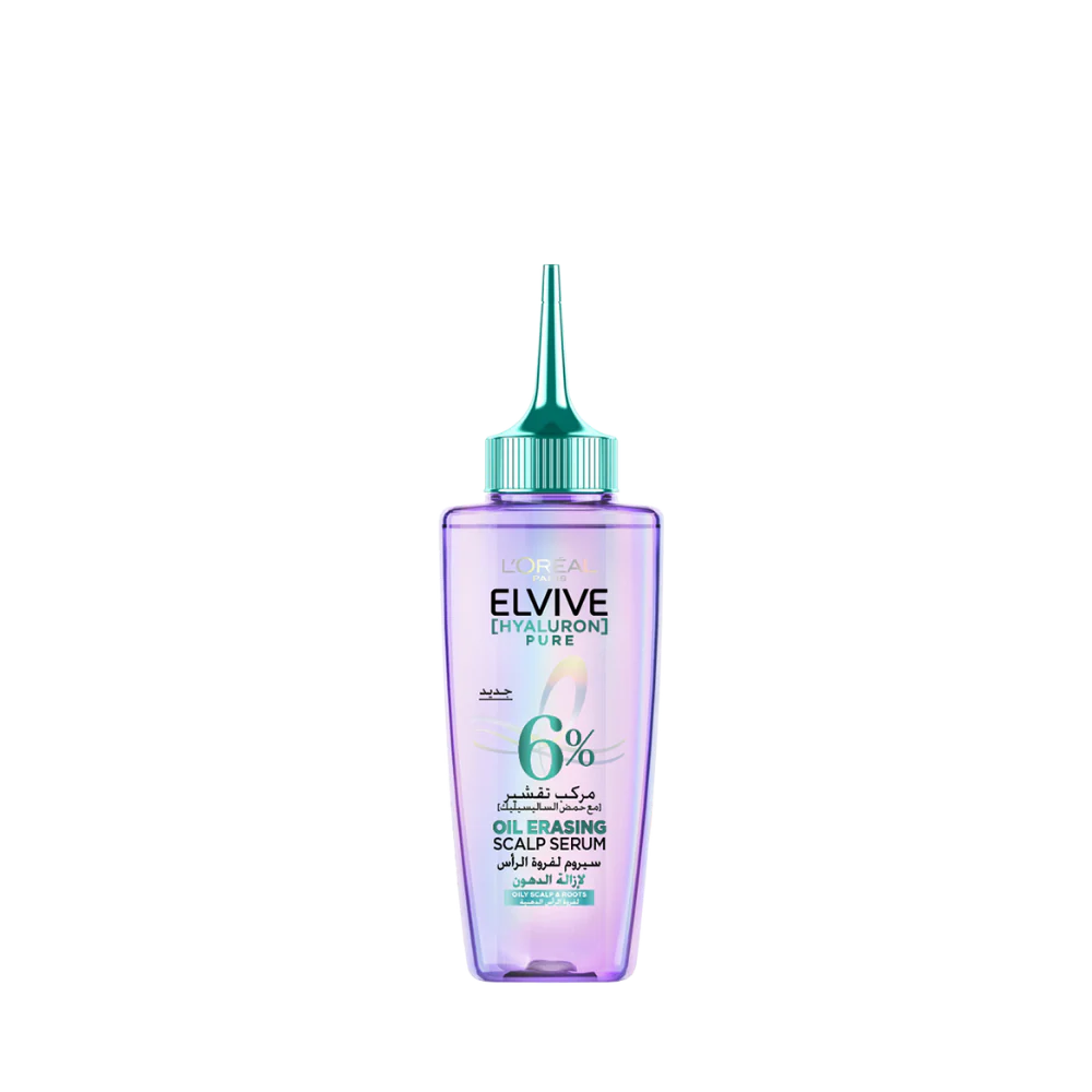 Inspired by skin care, Elvive Hyaluron Pure Oil Erasing Serum, For Oily Hair is expertly designed to reduce oils and purify the scalp. A dual-action combo of salicylic acid and hyaluronic acid removes impurities and leaves the scalp feeling pure and refreshed. The innovative, oil-erasing formula: