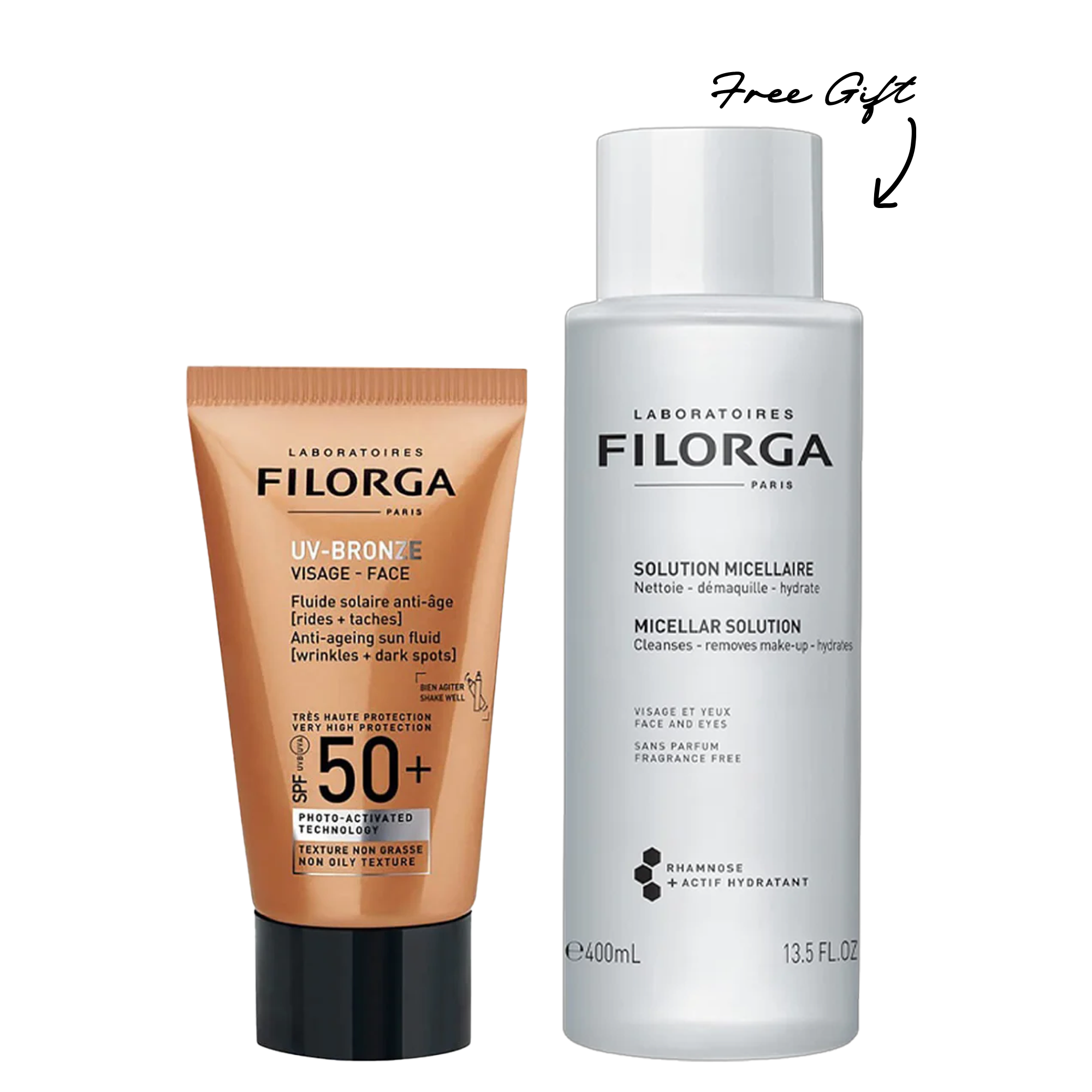 UV Bronze spf 50 anti -aging , anti-brown spots care + FREE Anti-Aging micellar solution 400 ml .