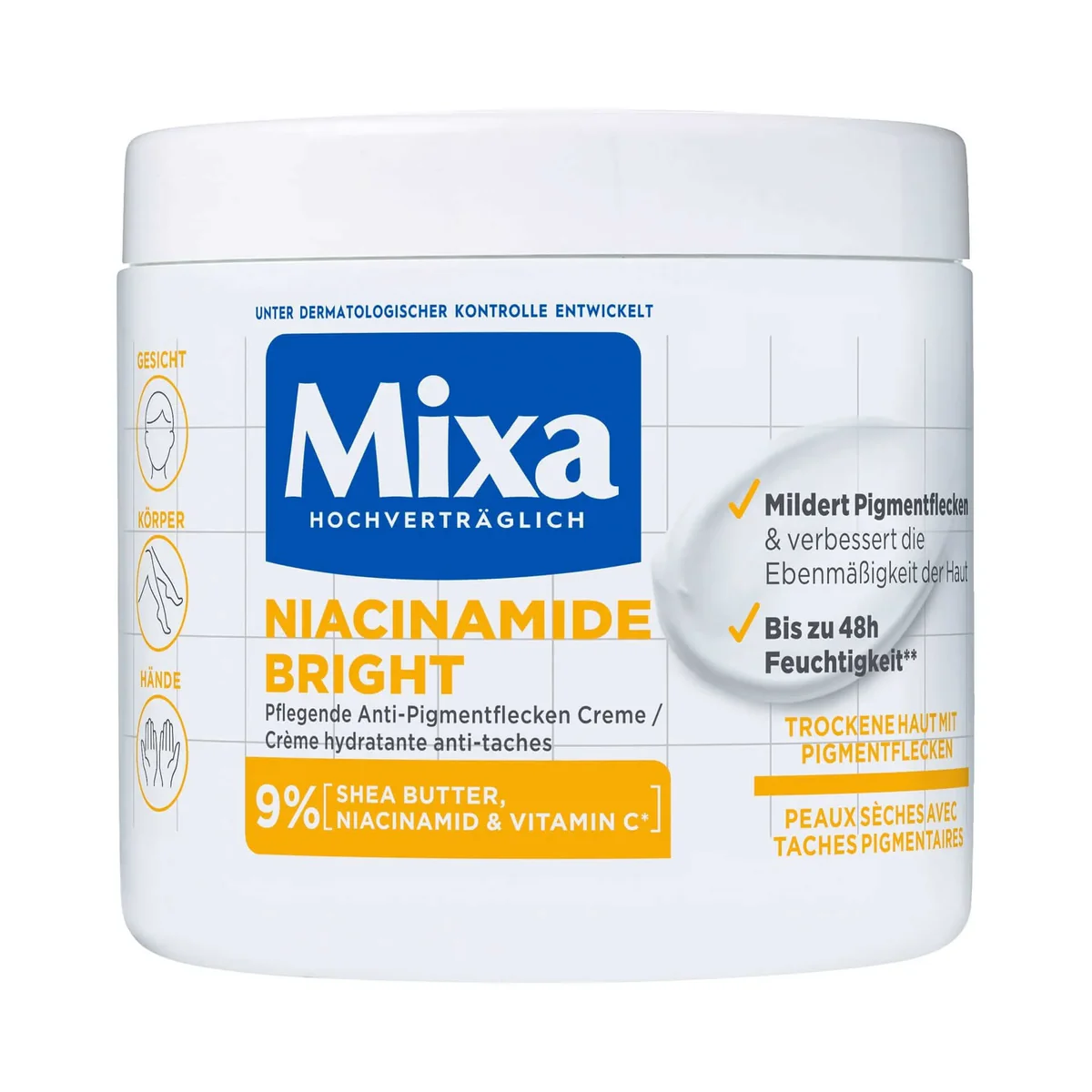 Discover Mixa ‘s innovative new range that nourishes and repairs . The Niacinamide Radiance Correction Cream evens out skin tone and boosts radiance . NEW – The Niacinamide Radiance Correction Cream, moisturizing and anti-dark spot, is ideal for very dry , dull skin prone to dark spots . Its anti- dark spot action has been clinically proven for all skin tones .