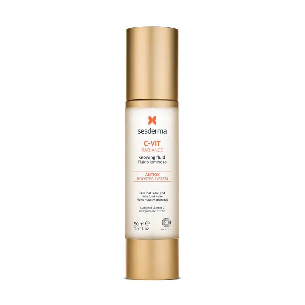 Cleanse and balance your skin. With Sensyses if you like cleansing solutions and cotton pads, or with Hidraven foamy cream if you prefer a water-based cleanser. Then, apply C-Vit Liposomal Serum or your regular serum. Apply C-Vit Radiance Glowing Fluid with a soft massage on face, neck and cleavage. Apply the correct amount by pressing the pump 3 times, to be extended evenly. You can use it both in the morning and at night. And don’t forget to use sunscreen!!