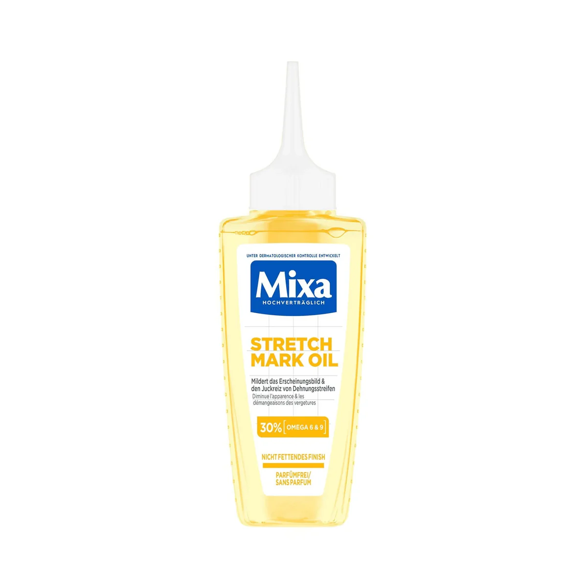 The effective solution for visibly improved skin: Mixa’s Stretch Mark Oil not only reduces the appearance of stretch marks but also soothes the unpleasant itching that often accompanies them.